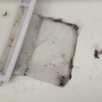 洗濯機の下に設置されている防水パンを覗き込むと、ホコリなど細かいゴミが沢山落ちているのが分かります。